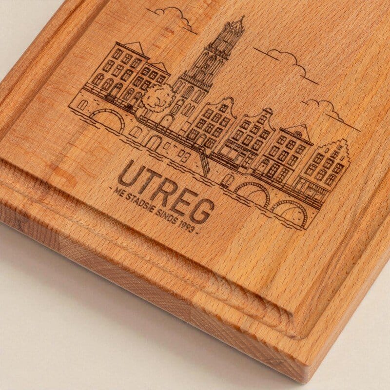 Of je nu kiest voor een persoonlijke gravure of niet, deze borrelplank maakt elk samenzijn extra speciaal met heerlijke hapjes op tafel. Liever een ander model? Ook een andere borrelplank graveren we graag voor je.